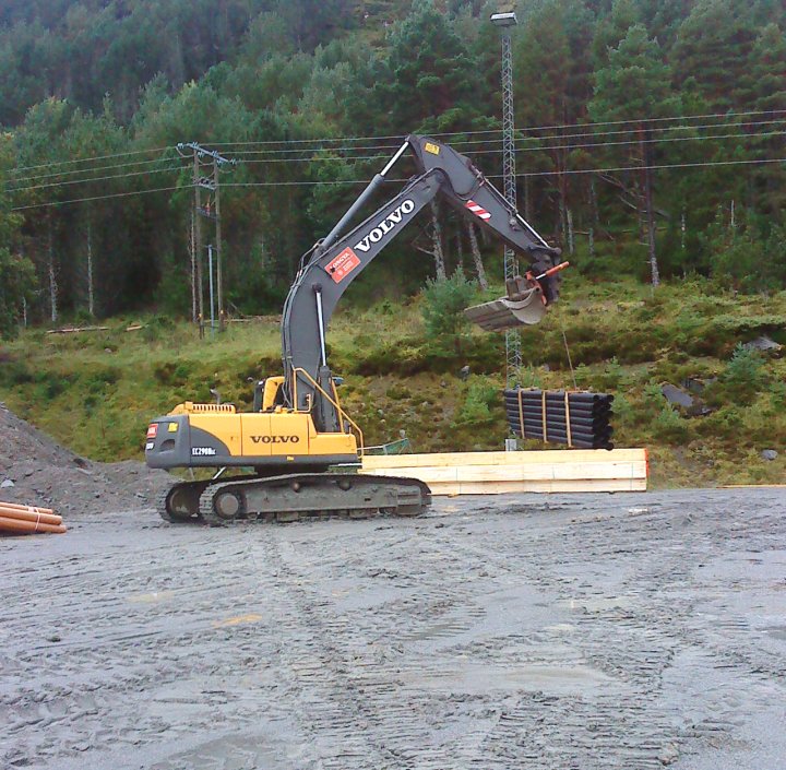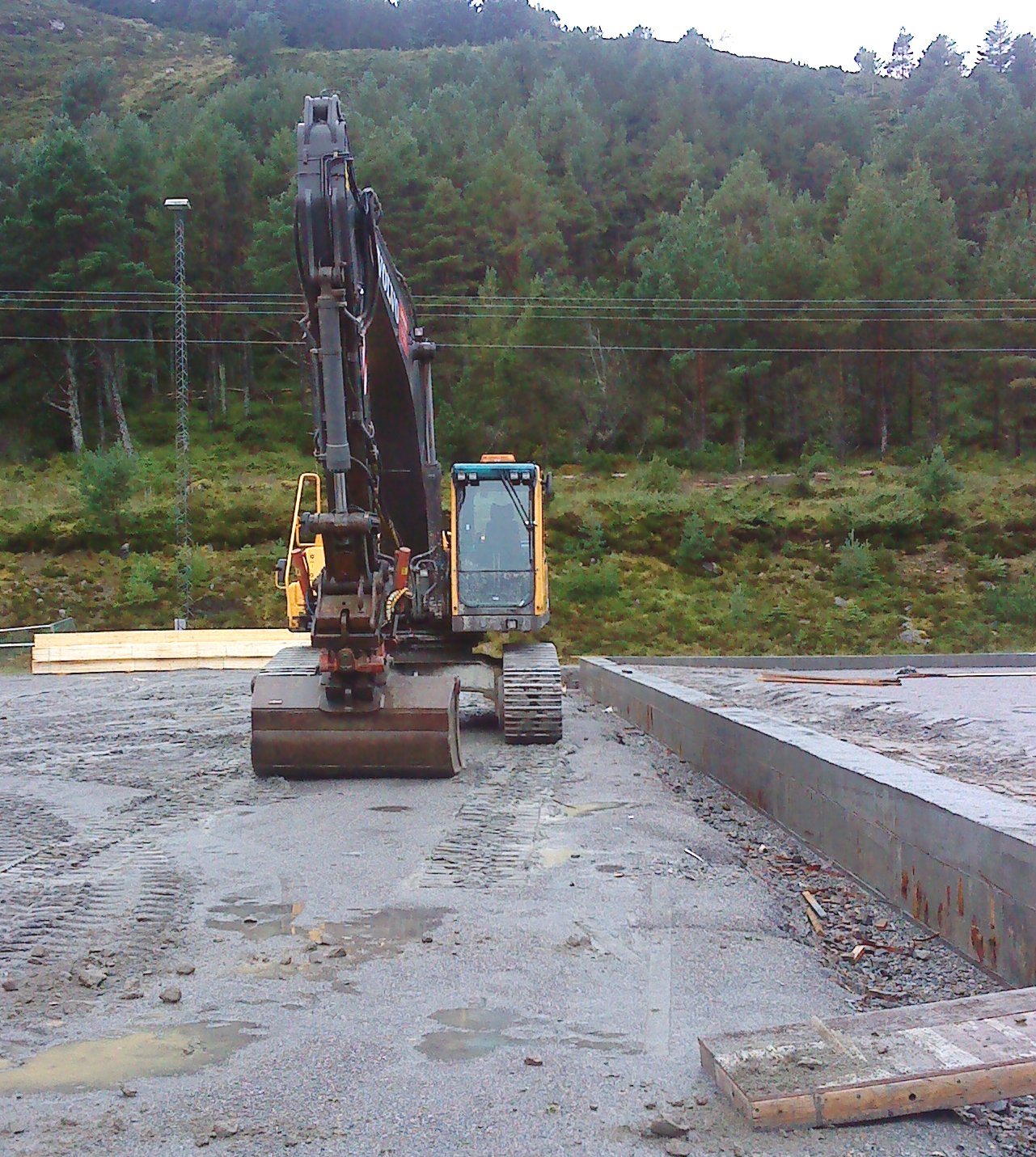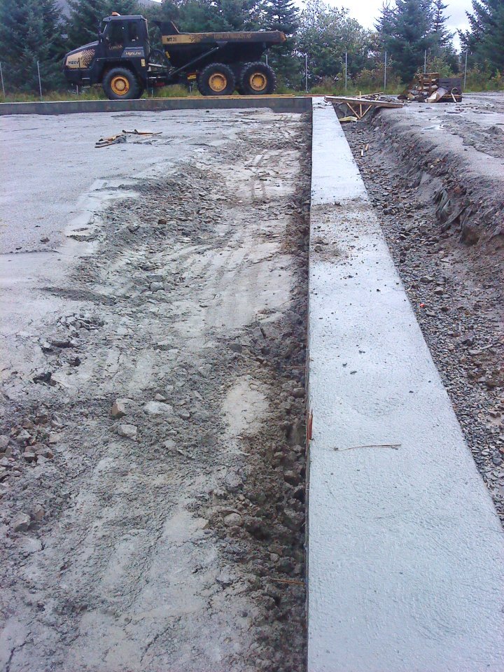 Idag var det mykje som skjedde på halltomta. Longva Maskin var på plass for å fylle inn til murane. Og så kom det takstolar som skal brukast på garderobe/lagertilbygget. Du kan sjå bilder her.