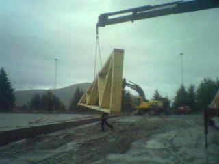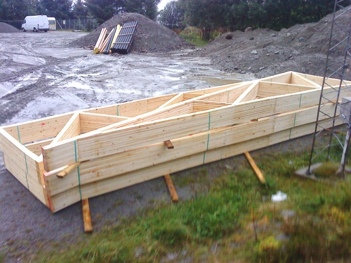51 takstolar er det som skal til for å få opp tilbygget på 30*8 meter. Desse takstolane skal ikkje brukast før sjølve hallen er oppe.